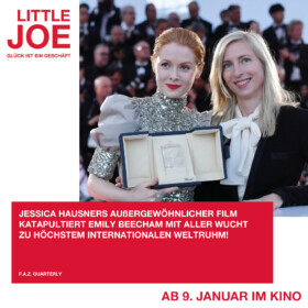 Hausner inszeniert eine kluge, bisweilen komische Metapher auf unsere Gesellschaft, die fast schon besessen nach dem eigenen, perfekten Glück strebt, ohne darauf zu achten, was sonst in unserer Welt passiert. Für ihre herausragende schauspielerische Leistung wurde Emily Beecham („Hail, Caesar!“, „Into the Badlands“) als Beste Darstellerin der Internationalen Filmfestspiele in Cannes 2019 ausgezeichnet. Ihr zur Seite stehen Ben Whishaw („James Bond 007: Spectre“, „The Lobster“), Kerry Fox („Intimacy“), Lindsay Duncan („Birdman“) und Nachwuchsstar Kit Connor („Rocketman“).